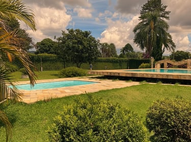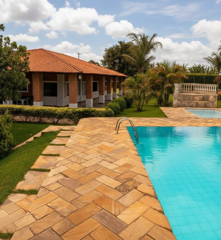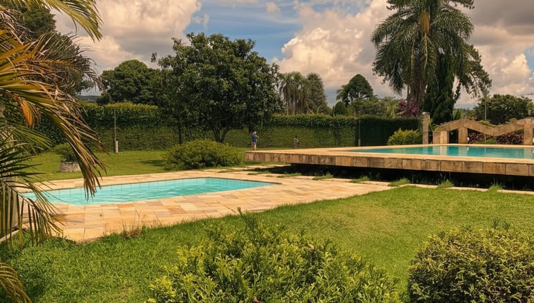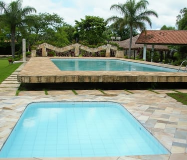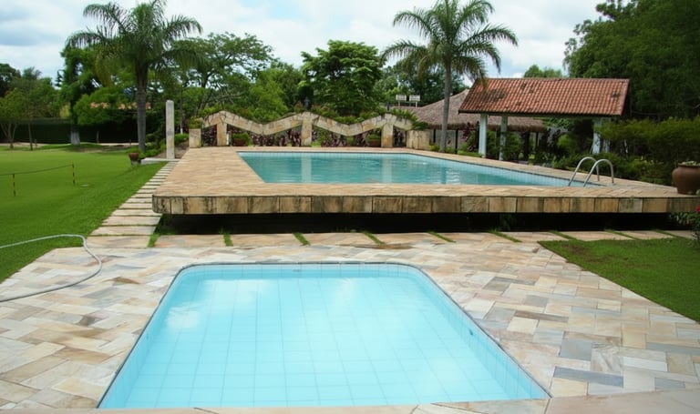 Piscina ampla e bem cuidada, ideal para momentos de lazer, confraternizações e eventos em dias de sol, proporcionando conforto e diversão para todos os convidados.