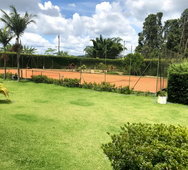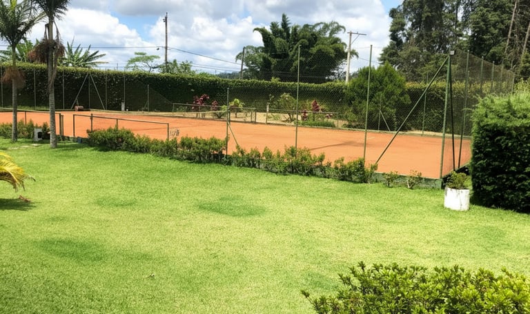 Quadra de tênis disponível para lazer e prática esportiva, trazendo ainda mais opções de entretenimento para os convidados.