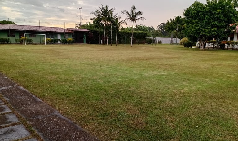 Gramado impecável para partidas, peladas e momentos de diversão ao ar livre. Perfeito para confraternizações e torneios entre amigos.